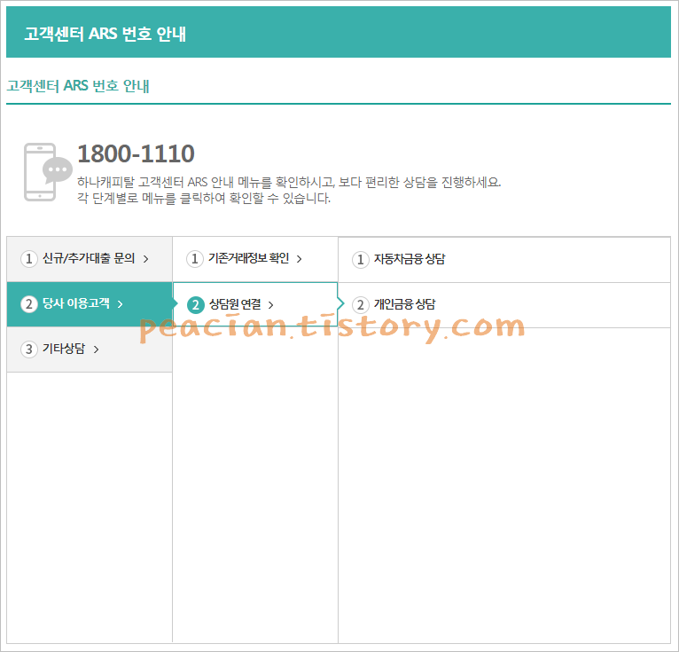 전화상담을 원하시는 경우 아래 하나캐피탈 고객센터 ARS 번호 및 메뉴 단축키를 참고해보세요. ARS고객센터 이용할 때 역시 필요 시 본인 확인을 요청할 수 있습니다.