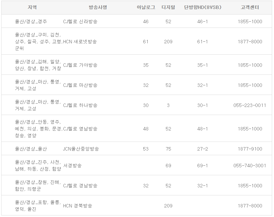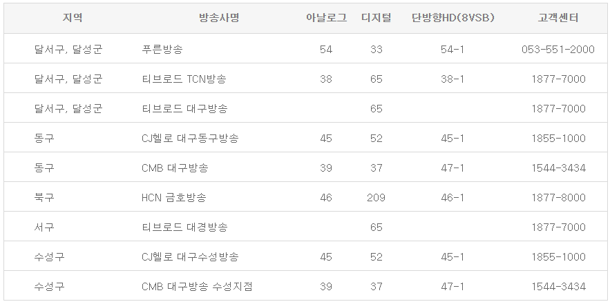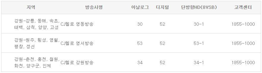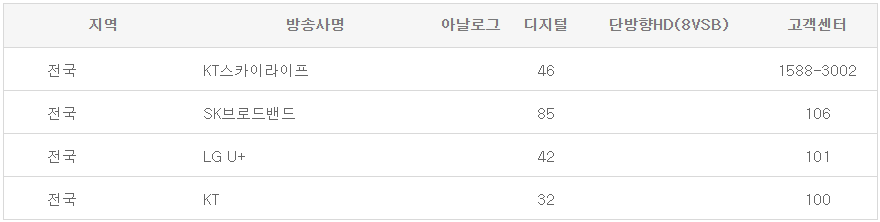다음은 지역별 xtvn 채널번호 및 일일편성표 정보입니다.